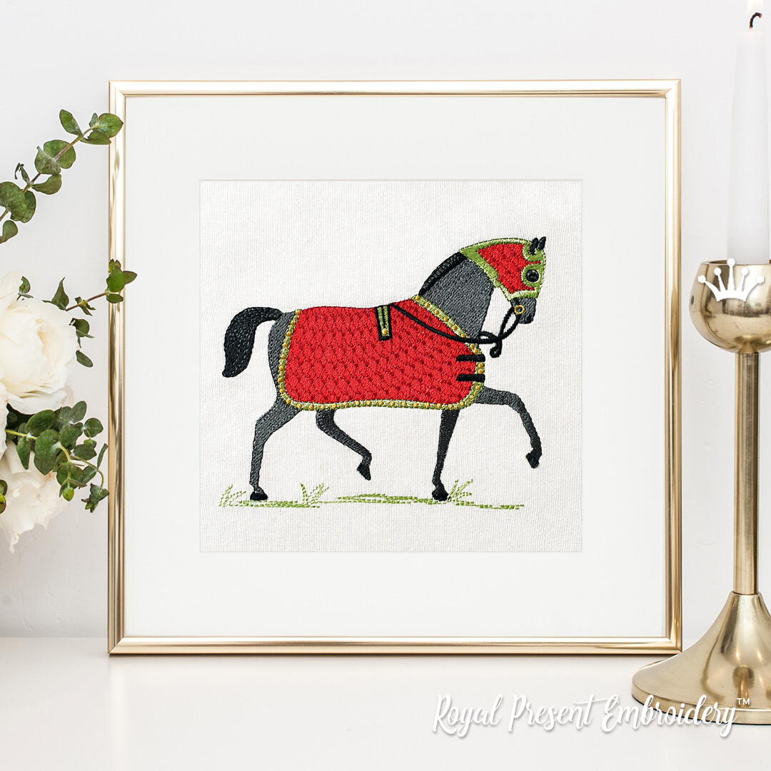 Лошадь в красной попоне Дизайн машинной вышивки - 3 размера