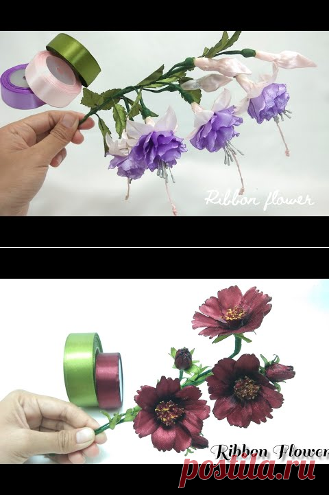 DIY/how to make ribbon flower fuchsia easy - YouTube