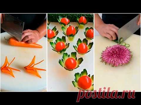 Как красиво нарезать овощи для украшения. Украшения салатов.