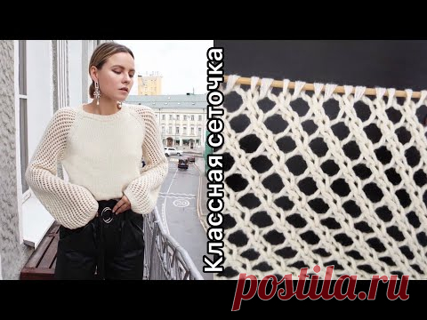 Простая ажурная сетка спицами. Openwork mesh knitting.