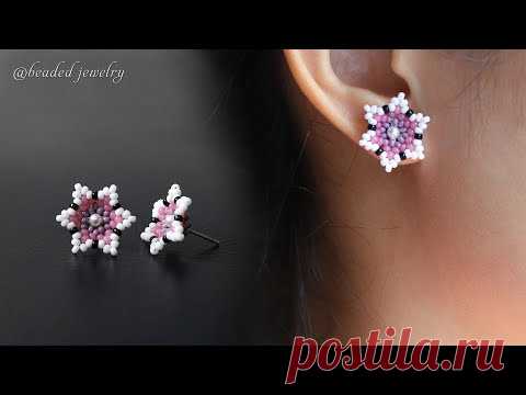Cherry blossom серьги-гвоздики. Как сделать украшения из бисера. Учебник по бисероплетению