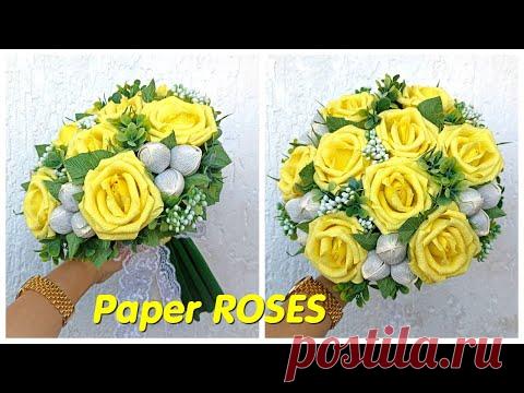 ПОДАРОК СВОИМИ РУКАМИ. Букет из ЖЕЛТЫХ РОЗ. Букет из конфет для учителя. DIY gift/ How to make ROSES - YouTube