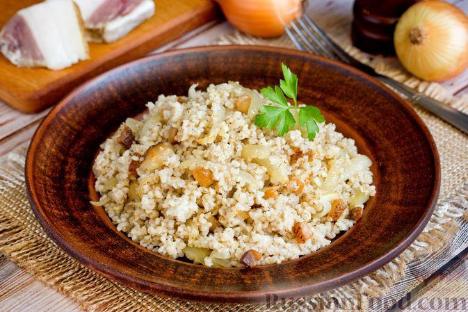 Рецепт: Ячневая каша со шкварками и жареным луком на RussianFood.com