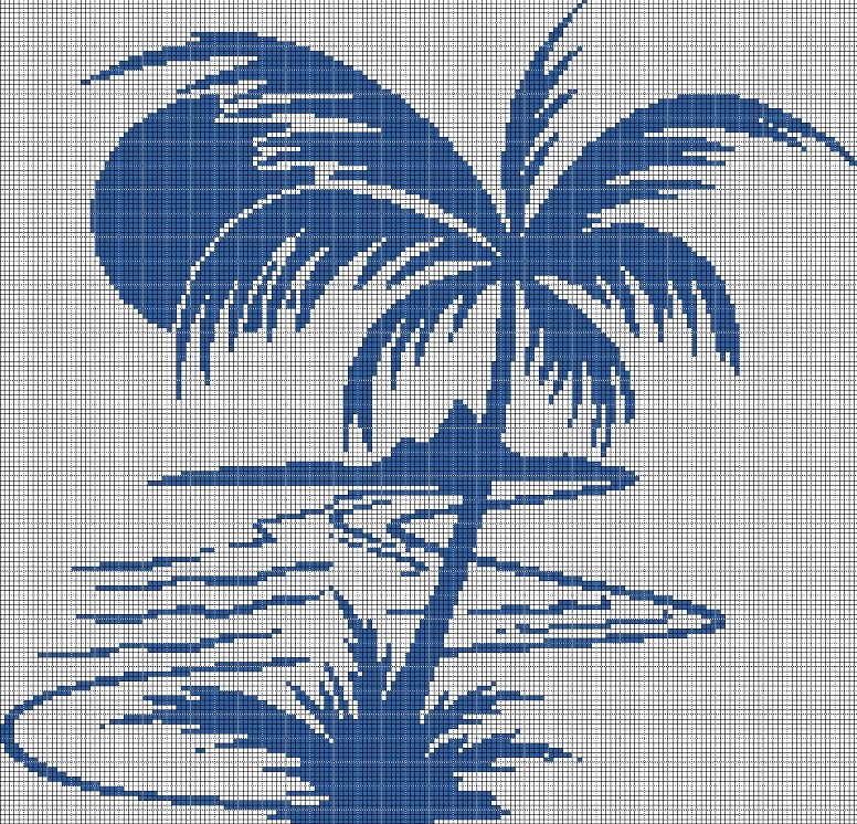 Остров с силуэтом пальмы, схема вышивки крестом в pdf
