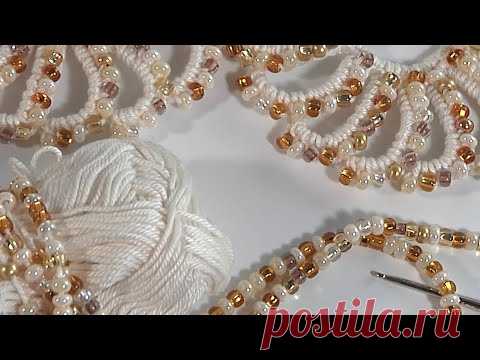 Это СУПЕР НАРЯДНО И СУПЕР КРАСИВО/Нежное ЛЕНТОЧНОЕ КРУЖЕВО крючком с БИСЕРОМ/Авторская разработка