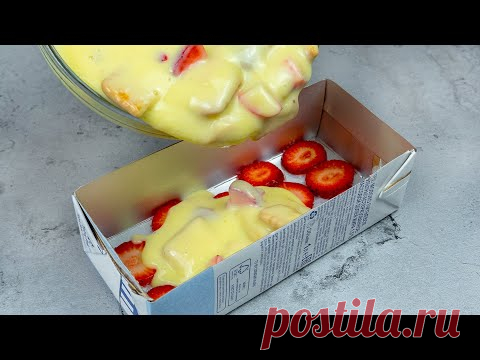 Торт, который покоряет! Печенье, клубника и заварной крем в коробке из-под молока!