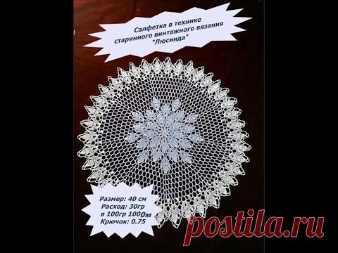 Салфетка "Люсинда". 40 см.Старинное винтажное вязание. Мастер класс