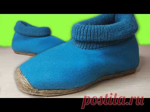 Смотрите какие у меня получились классные тапочки из старых вещей!Легкие, удобные, сидят как влитые!