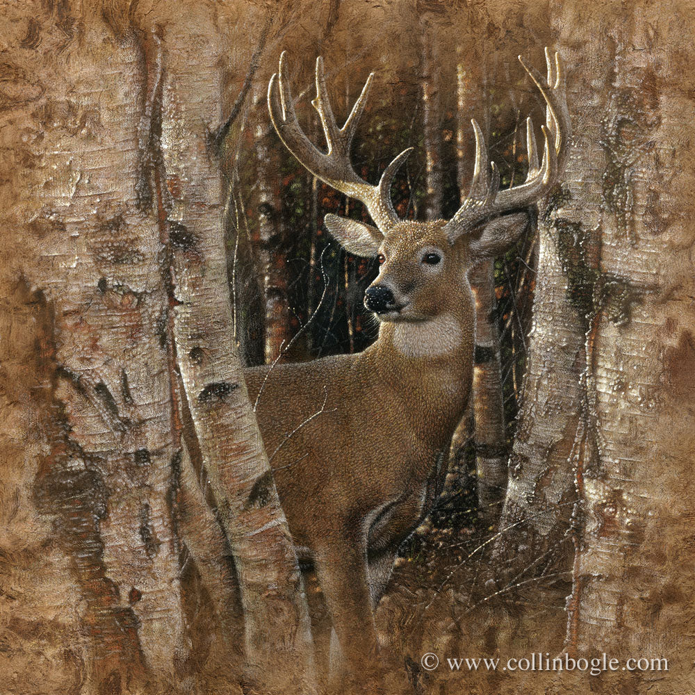 Birchwood Buck - Whitetail Deer Painting, Hand Signed Art Print by Collin Bogle - Collin Bogle Nature Art
