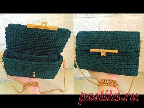 Маленькая вязаная сумка с большой вместимостью и внутренним карманом - легко для начинающих.