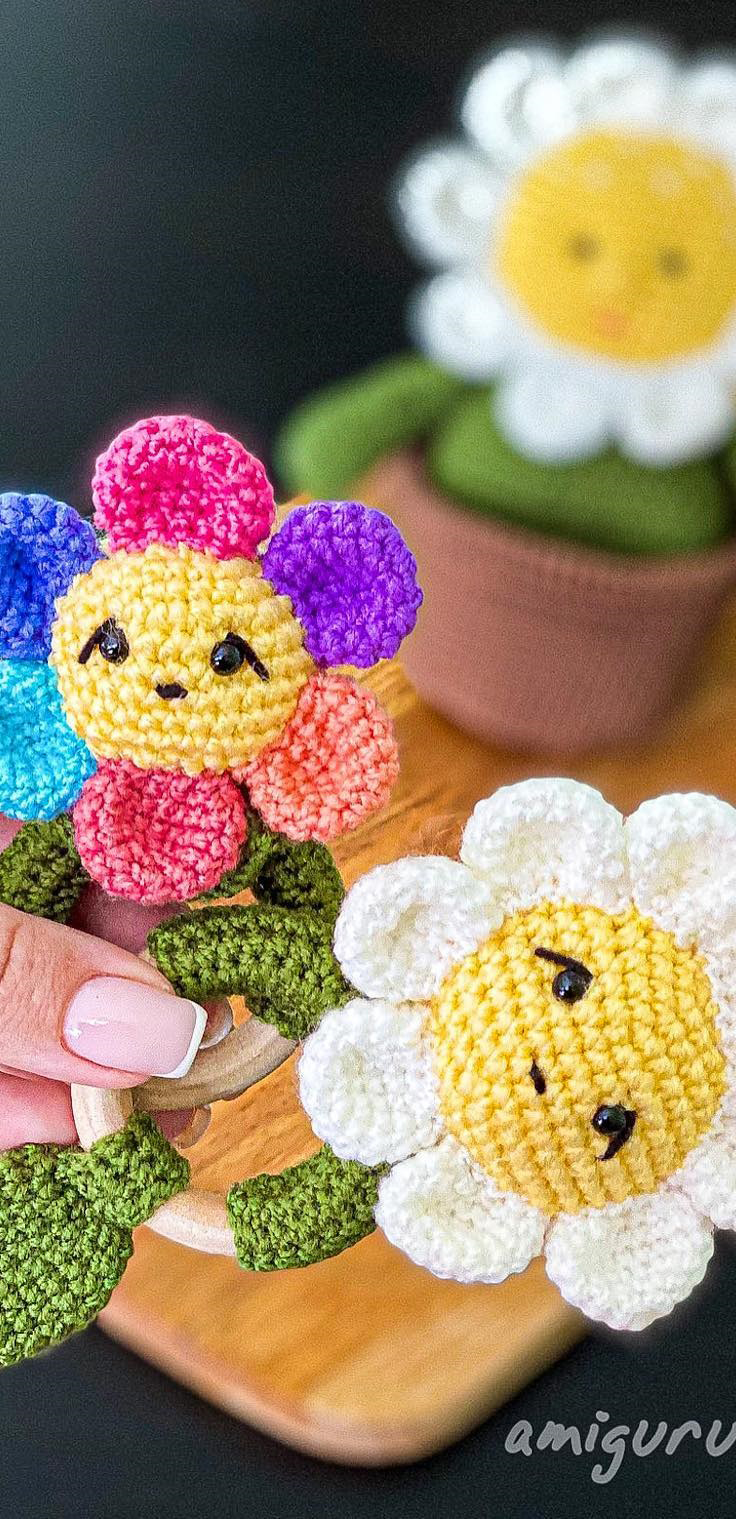 PDF Погремушка Цветок крючком. FREE crochet pattern; Аmigurumi flower patterns. Амигуруми схемы и описания на русском. Вязаные игрушки и поделки своими руками #amimore - погремушка для малышей в виде маленького цветка, цветы, цветочек.