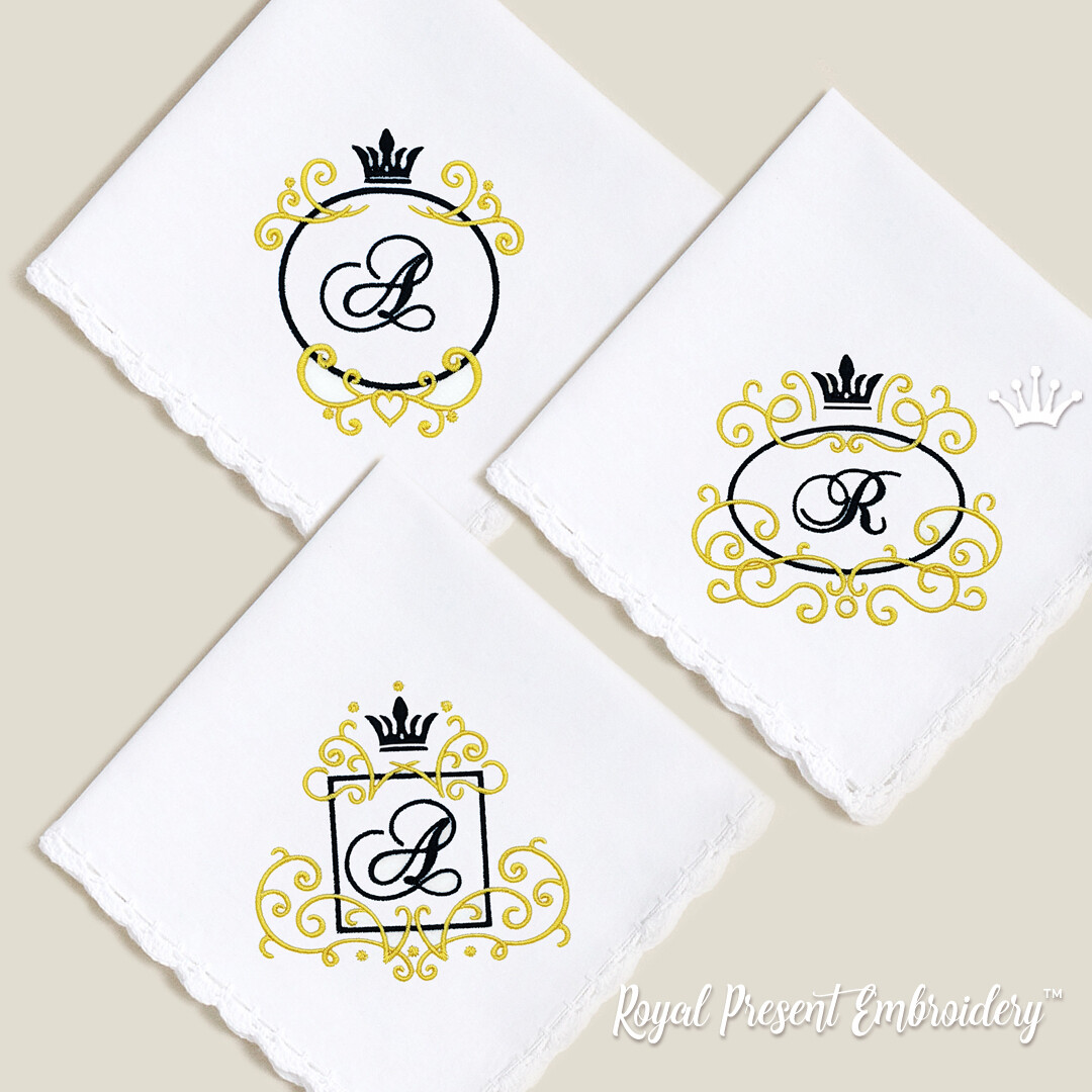 Три Обрамления для монограмм с короной Набор Дизайнов машинной вышивки