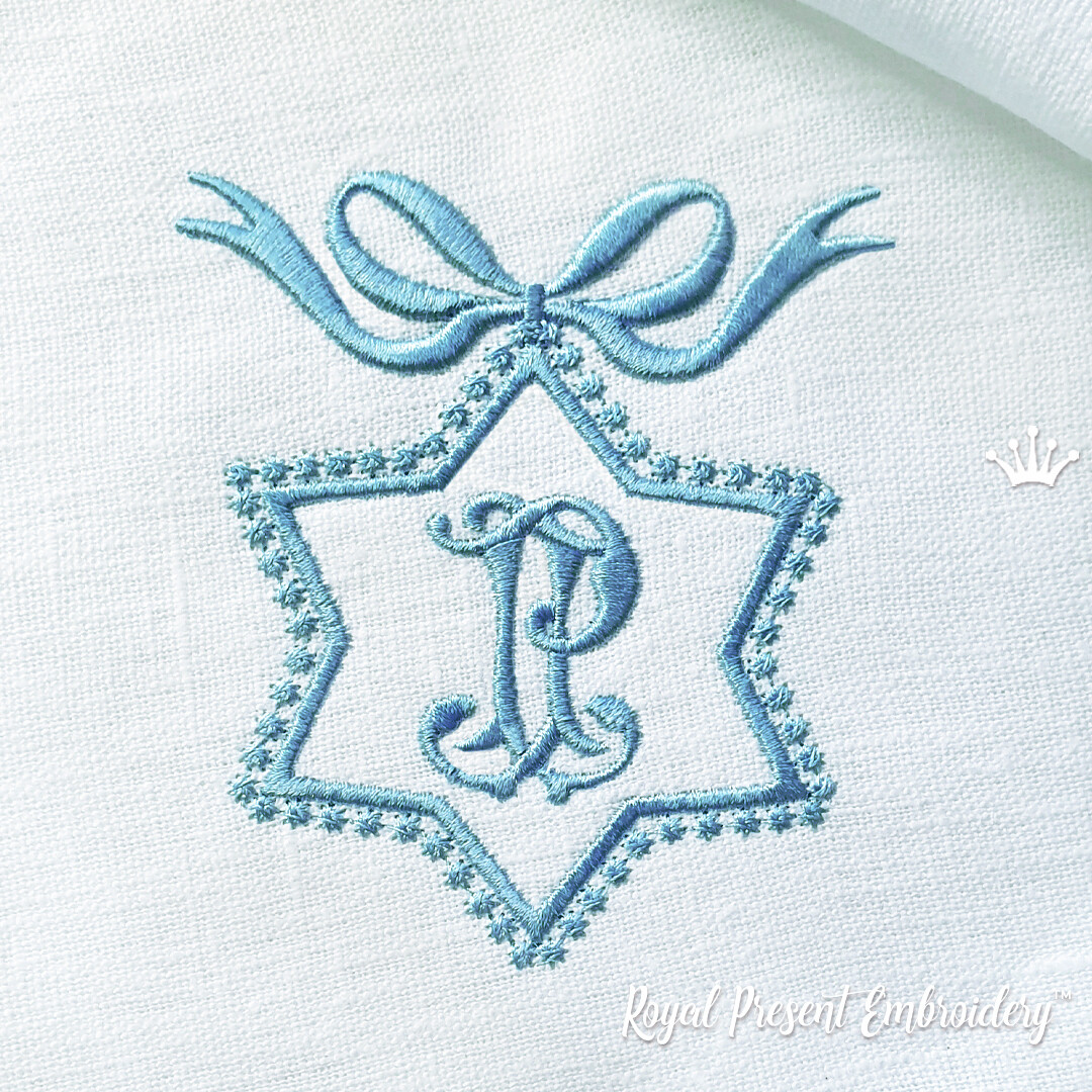 Рамка звездочка с 3D бантом Дизайн машинной вышивки