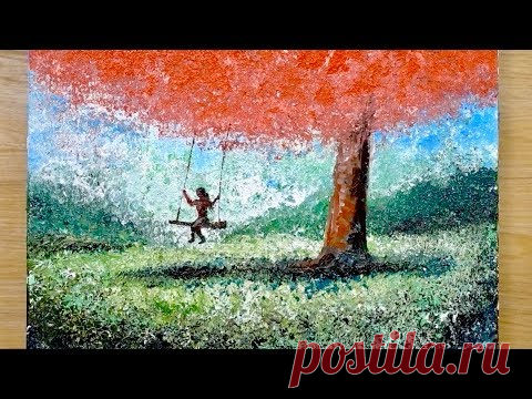 Техника рисования алюминием / Как нарисовать девушку на качелях
