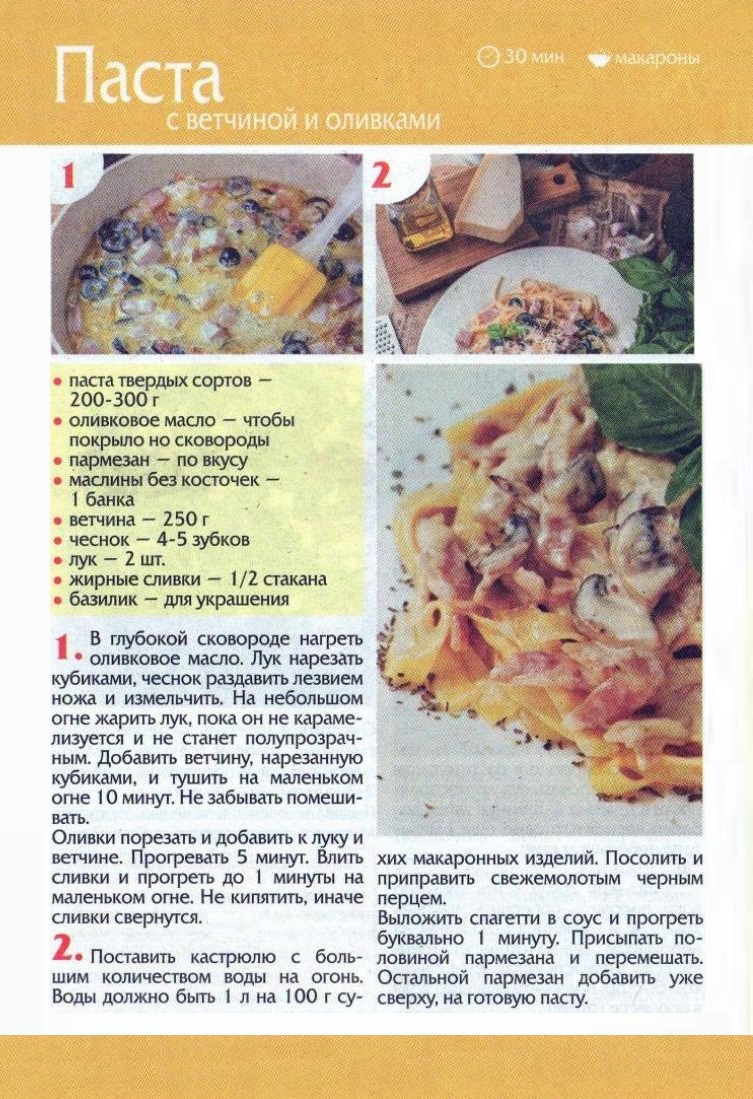 Паста с ветчиной и оливками