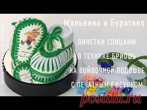 #352. Пинетки Мальвина и Буратино спицами. Пинетки, связанные спицами.