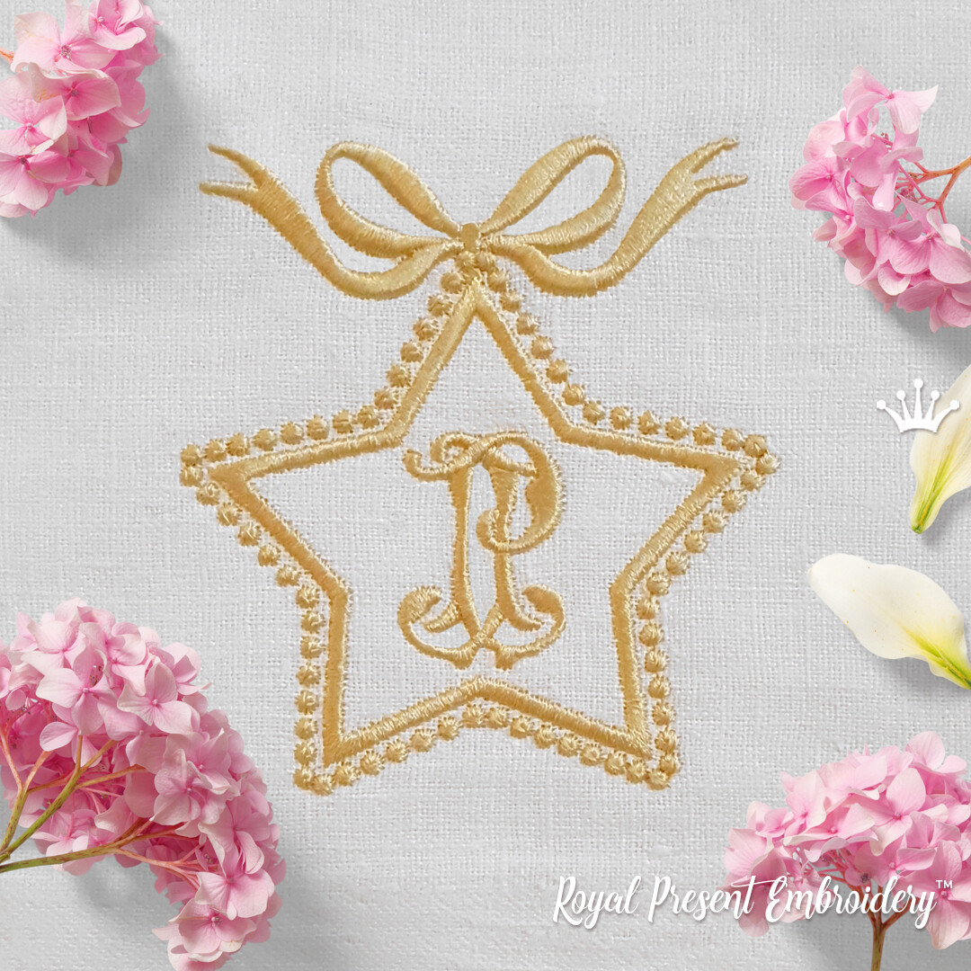 Рамка звездочка с 3D бантом Дизайн машинной вышивки