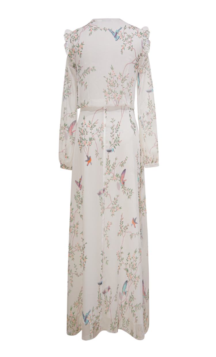 I designer di passerelle Vintage primavera autunno vestono le donne 2021 eleganti volant abito a pieghe stampato floreale bianco Vestido in Chiffon|Dresses| - AliExpress