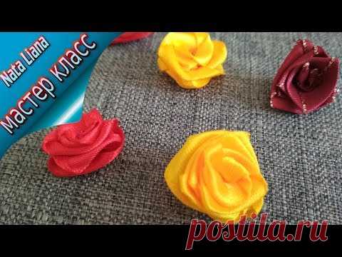 МИНИ РОЗА из узкой ленты за 5 минут. Очень простой способ. / Mini Roses with Satin Ribbon