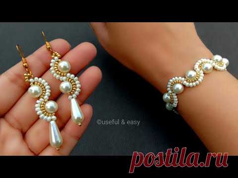 Изготовление украшений в домашних условиях//Браслеты и серьги с волнами//Украшения из бисера