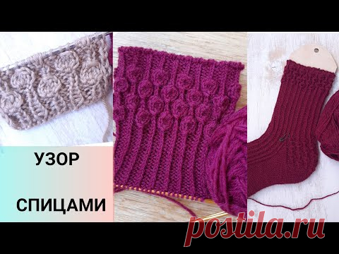 Узор спицами шишечки, необычные шишечки спицами, простой красивый узор спицами