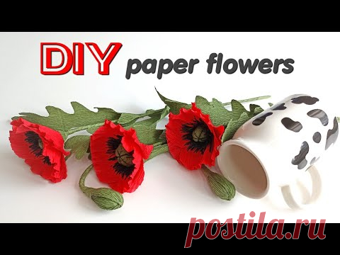 Реалистичные Маки из гофрированной бумаги/ DIY/ Paper flowers/ Easy way/ Crepe paper field poppies. - YouTube