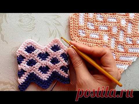 Как связать удивительный мозаичный узор зиг-заг? Лёгкий способ для начинающих вязать крючком.
