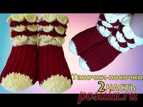 ТЕПЛЫЕ И ПРОСТЫЕ ТАПОЧКИ-НОСОЧКИ КРЮЧКОМ//МАСТЕР-КЛАСС 2 ЧАСТЬ//ВЯЗАНИЕ//ДЛЯ НАЧИНАЮЩИХ//CROCHET