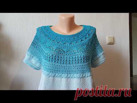 Туника спицами с круглой кокеткой "Восточная сказка", обзор готового изделия.