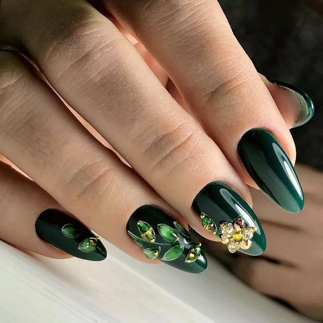 Зеленый маникюр с цветами: 100 ЛУЧШИХ идей и новинок дизайна