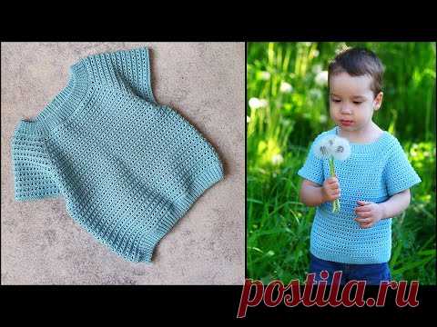 Стильная детская футболка крючком | Реглан, росток | Подробный мастер-класс