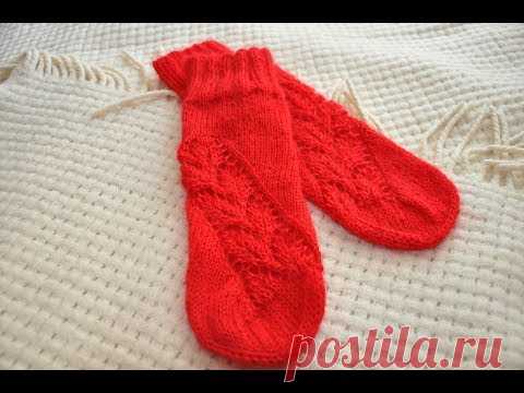 ЧАСТЬ 3 АЖУРНЫЙ УЗОР ЛИСТИКИ ПО ДИАГОНАЛИ СПИЦАМИ КАК СВЯЗАТЬ НОСКИ СПИЦАМИ