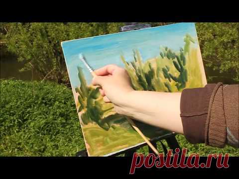 Майский этюд, пейзаж на пленэре в Подмосковье, урок, мастер-класс по живописи маслом.
