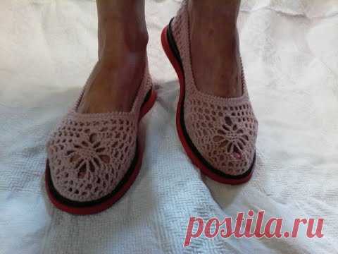 Летние ажурные мокасины вязаные крючком на подошве
