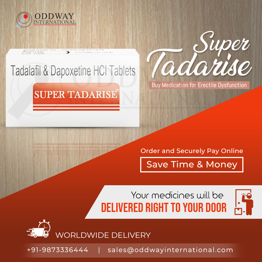 Мужчины с эректильной дисфункцией (ЭД) и преждевременной эякуляцией (ПЭ) могут быть эффективно Лечили Супер Тадаризом (Дапоксетин + Тадалафил). Купите супер тадариз оптом в Oddway International для лечения проблемы ЭД от Sunrise Remedies Pvt. ООО Мы супер экспортер tadarise, оптовый торговец и поставщик таблеток Tadarise.