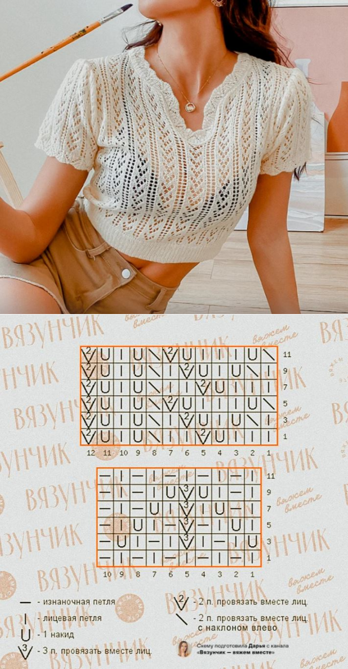 Летний кроп топ спицами, схема