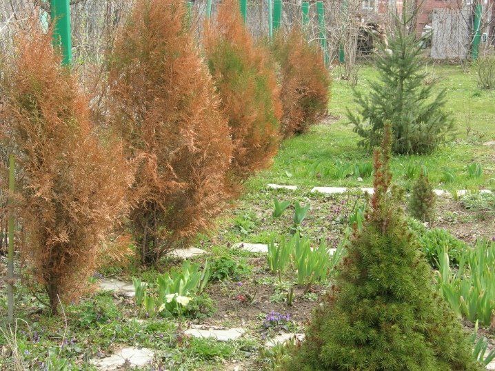 Как спасти тую, если она после зимовки стала жёлтой | Любимая дача и огородик Пульс Mail.ru Садоводы любят высаживать тую на дачных участках. Живая изгородь из туи украшает участок. Ее можно сажать на клумбах, придавать растениям интересную форму.