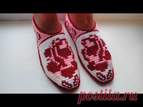 Домашние тапочки на подошве крючком. Тунисское вязание. Часть 3. Tunisian crochet slippers