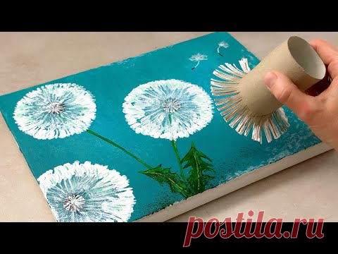 Как нарисовать одуванчики акрилом с помощью втулки от туалетной бумаги