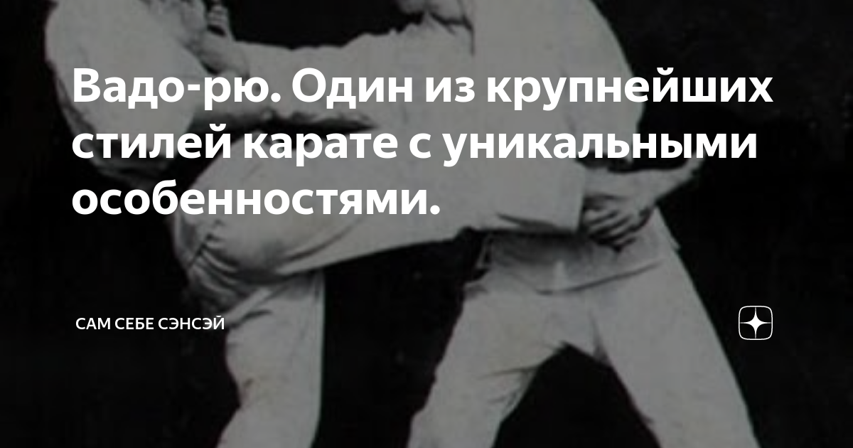 Вадо-рю. Один из крупнейших стилей карате с уникальными особенностями. В «большой пятерке» главных японских стилей карате, вадо-рю стоит особняком - как по происхождению, так и по технике. Кроме того, есть принципиальные различия в методике тренировок, и других аспектах. Чтобы понять это, нужно обратиться к личности создателя стиля - Хиронори Оцука. Его мастерство и уникальный опыт позволили создать нетипичное карате, которое, в принципе, вполне могло быть признано самосто...