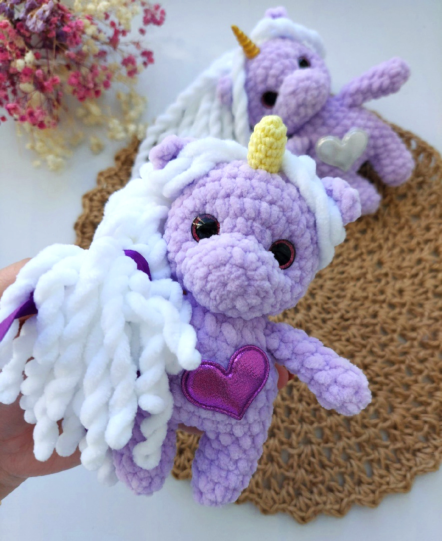 PDF Единорожка с ладошку крючком. FREE crochet pattern; Аmigurumi animal patterns. Амигуруми схемы и описания на русском. Вязаные игрушки и поделки своими руками #amimore - плюшевый единорог, единорожка из плюшевой пряжи.