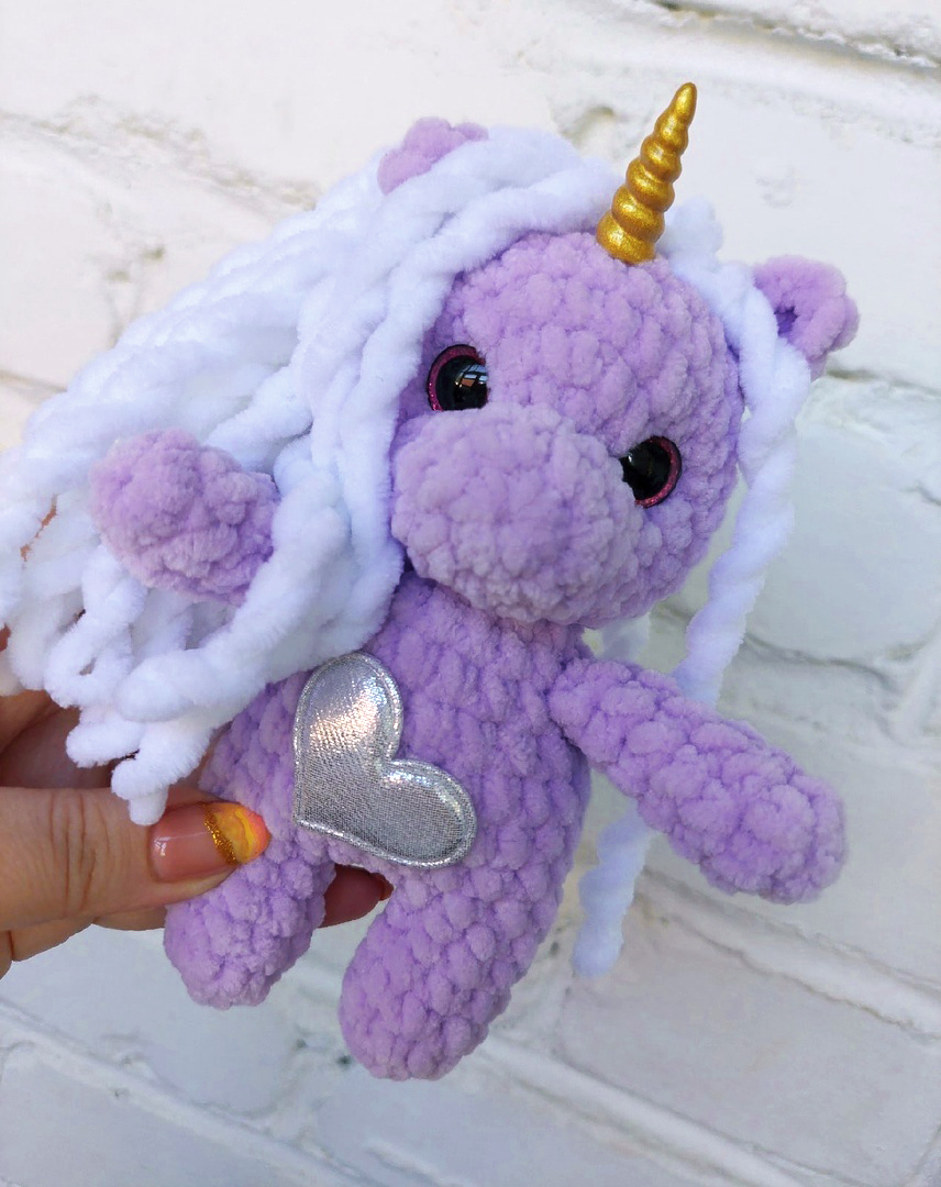 PDF Единорожка с ладошку крючком. FREE crochet pattern; Аmigurumi animal patterns. Амигуруми схемы и описания на русском. Вязаные игрушки и поделки своими руками #amimore - плюшевый единорог, единорожка из плюшевой пряжи.