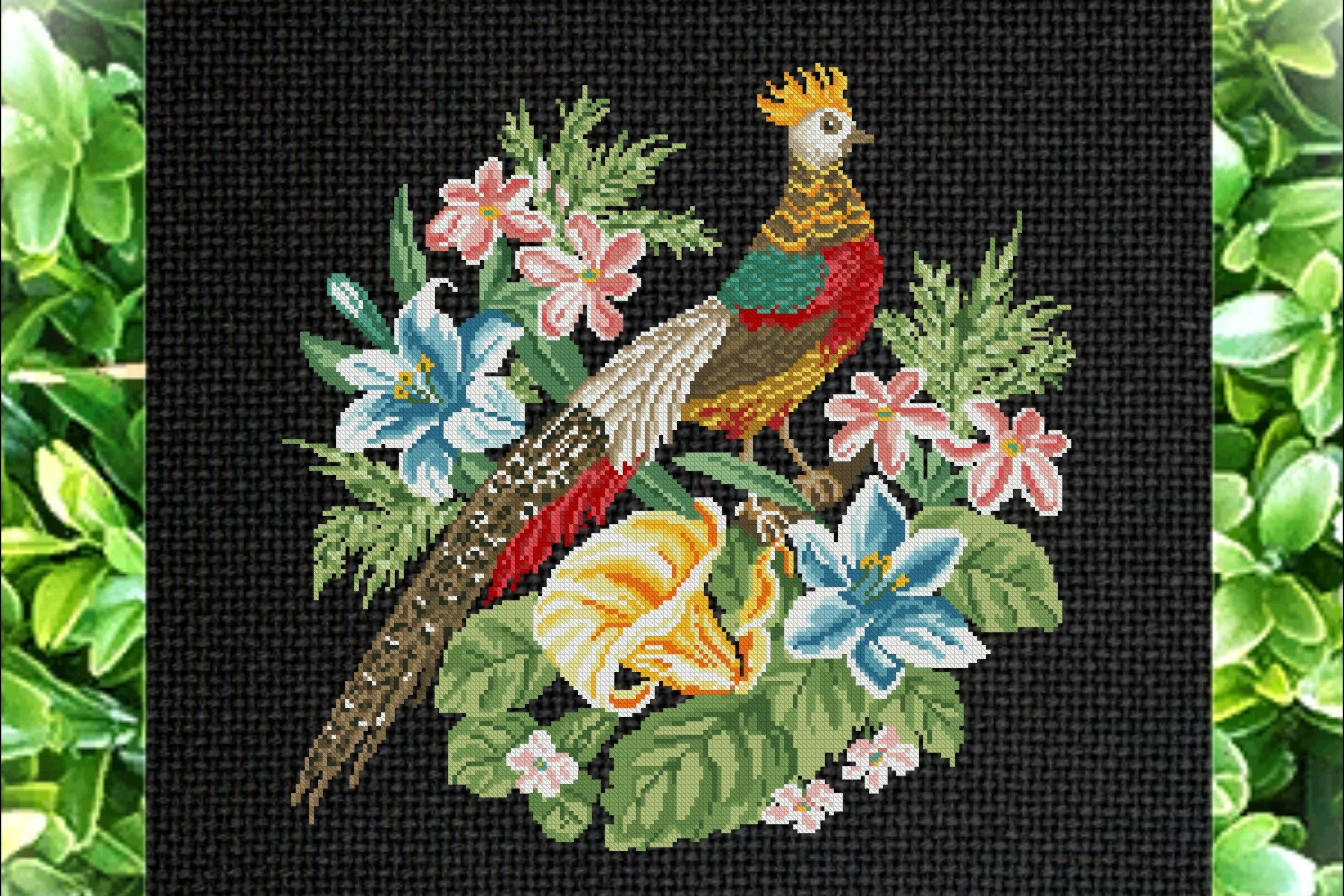 Vintage Cross Stitch Scheme Pheasant and lilies 2 (2008492) | Cross Stitch | Design Bundles