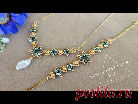 Boncuktan şık Kolye & bileklik seti yapımı.Jewelry set.How to make beaded jewelry.Bracelet &necklace