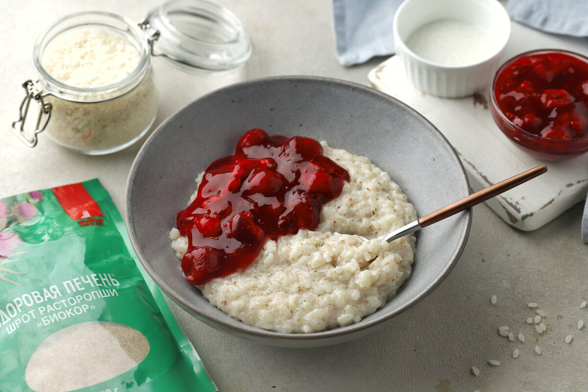 Рисовая каша со шротом расторопши и вишневым соусом | Биокор | Яндекс Дзен