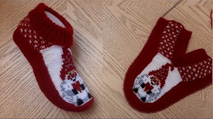НОВИНКА 2021 : Новогодние тапочки-следки на спицах + тунисское вязание без швов // patik 1 часть