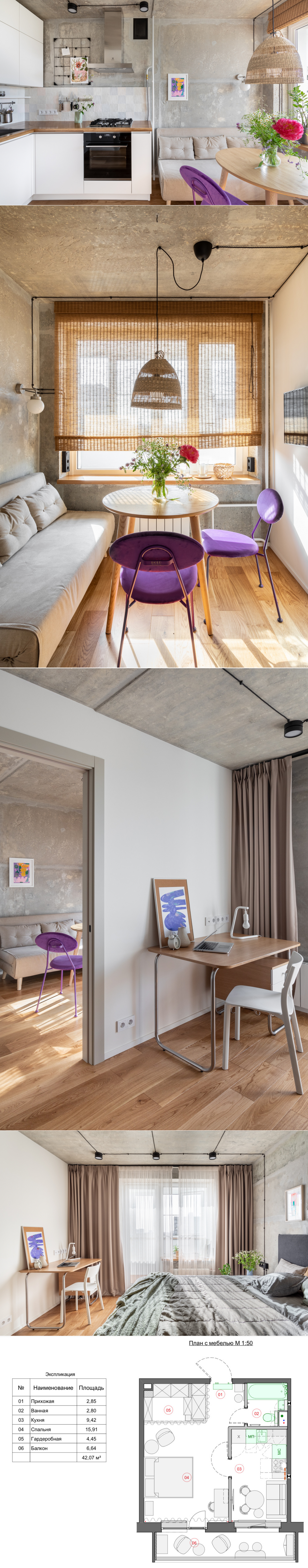 Houzz-тур: 42 кв.м — женственная квартира с бетонными стенами | Houzz Россия