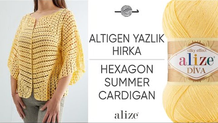 Alize Diva ile Altıgen Yazlık Hırka • Hexagon Summer Cardigan • Шестигранный летний кардиган
