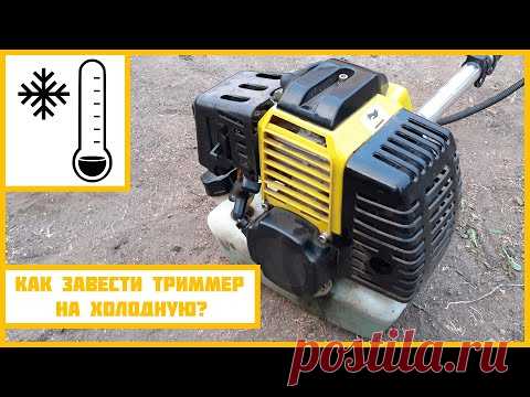 Заводим бензокосу на холодную.