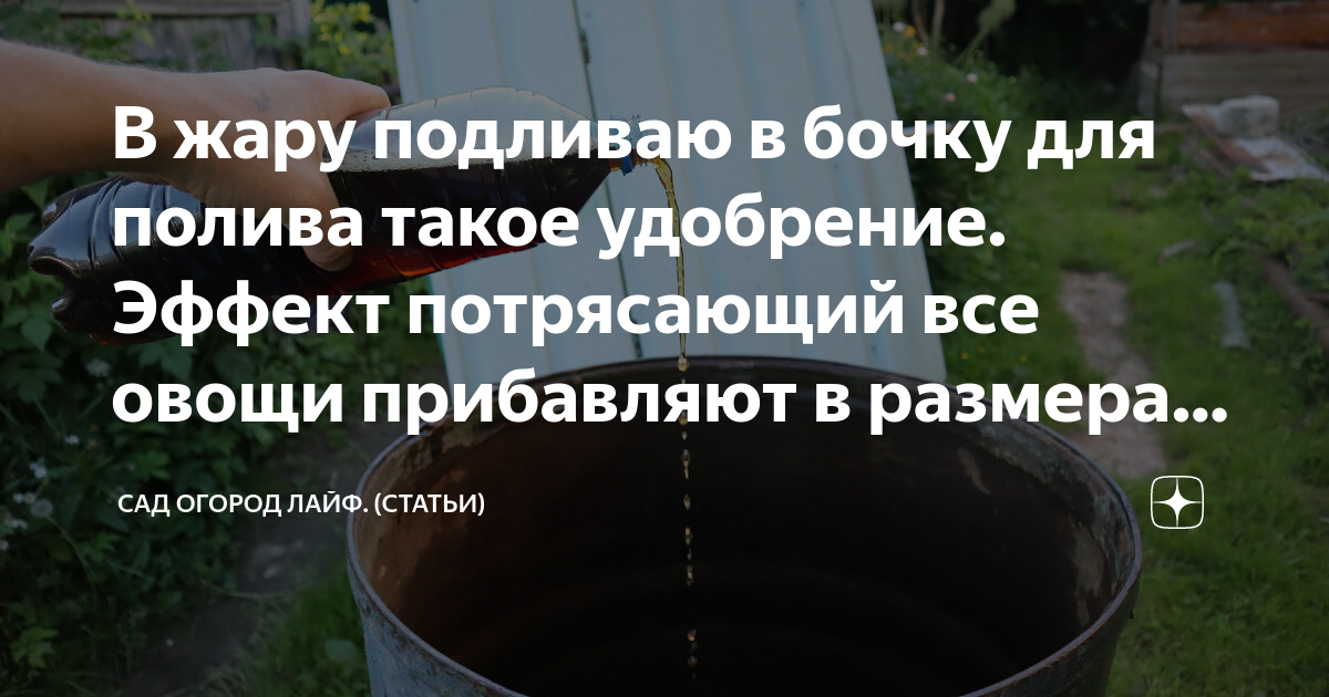 В жару подливаю в бочку для полива такое удобрение. Эффект потрясающий все овощи прибавляют в размерах на глазах. Ну вот и дождались, неужели в конце июня наступила долгожданная жара? Сегодня расскажу, что именно я добавляю в жару, в бочку с водой для полива, чтобы растения не только легче переносили знойную погоду, но и прибавляли на глазах в размерах. Если честно, я думала что всё лето будет холодным и клубника поспеет только к августу! Но слава богу наступила теплая, д...